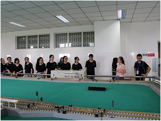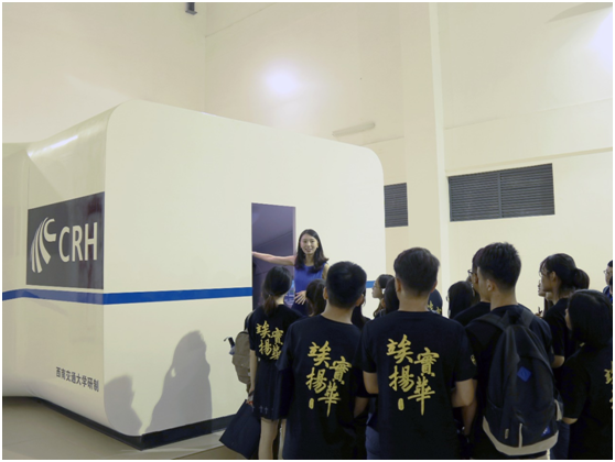 在实验室老师们的精彩讲解中,营员们首先参观了高速铁路驾驶行为仿真系统,该系统通过运动型列车驾驶仿真器(FMS-M)和静态型列车驾驶仿真器(FMS-S)模拟高速列车组的操纵环境、故障应急处理、非正常行车处理和突发事件处理训练。