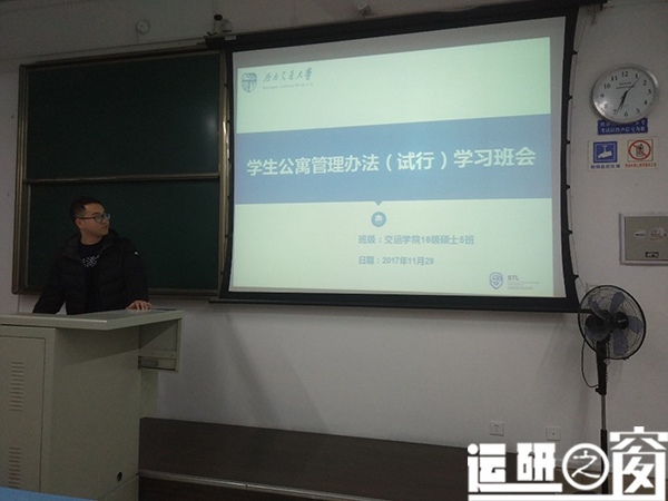 2017年11月29日18:30,伟德国际19492016级硕士5班在二号教学楼X2226教室举办了学校新修订的 《伟德国际1949始于英国员工公寓管理办法(试行)》交流会,本次交流会的参与成员为班级同学,由张贤淼同学为大家介绍新修订的员工公寓管理办法。经验交流会开场前20分钟,16级交运硕士5班的班委们提前到达课室,并讨论了班会的主要学习内容。