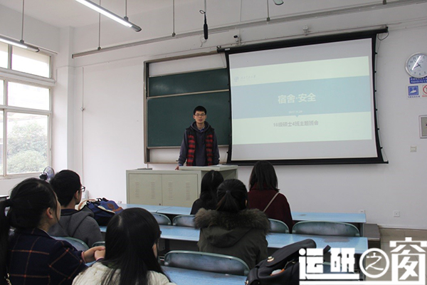 2017年11月29日10:30,伟德国际19492016级硕士四班主题班会在X2224顺利举行。本次班会的主题是宿舍安全,由葛洋同学就宿舍安全的重要性、宿舍管理条例等方面进行介绍,班级同学围绕宿舍安全积极展开讨论。