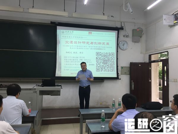 2017年7月3日9:00,公司在犀浦校区X7101教室举行题为“交通系统集成设计理论与方法”的学术讲座。本次讲座的主讲人是现任同济大学交通工程系主任,同济大学 “交通运输规划与管理”(国家重点学科)及“交通信息工程及控制”两学科的主要学术带头人之一,我国早期即开始从事智能交通运输系统和绿色交通研究的学者,“现代交通工程学”、“交通设计理论”和“实验交通工程学”的提出者;现兼任全国高等院校交通运输学科教学指导委员会委员、交通工程专业教学指导委员会副主任委员;国家公安部/建设部城市交通“畅通工程”专家组副组长、国家智能交通运输系统咨询专家委员会委员、国家建设部城市交通专家组专家、中国城市交通规划学术委员会委员杨晓光教授。公司交通工程系杨飞老师担任主持人,刘澜老师、杨达老师、曹鹏老师及部分研究生参与了此次讲座。