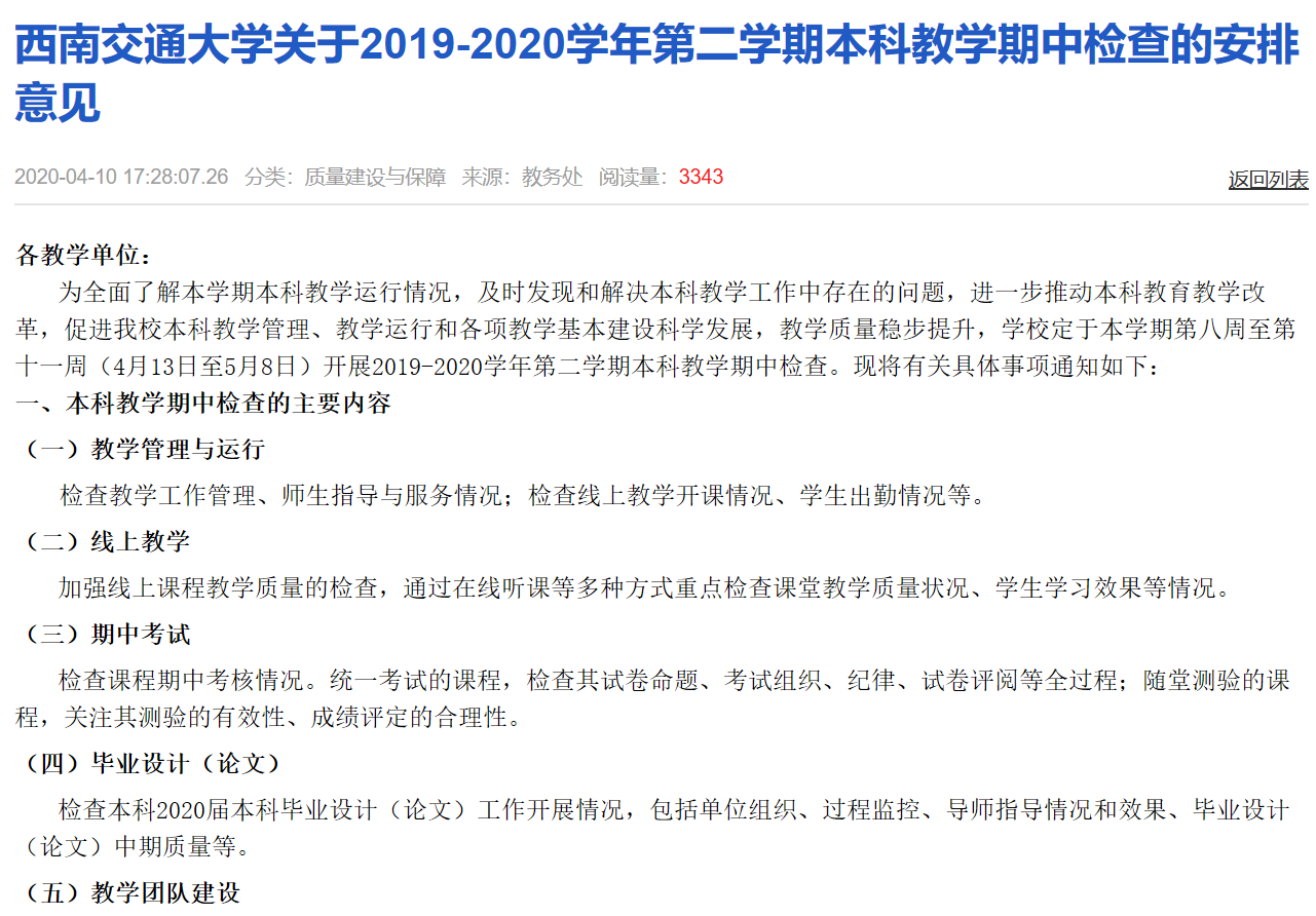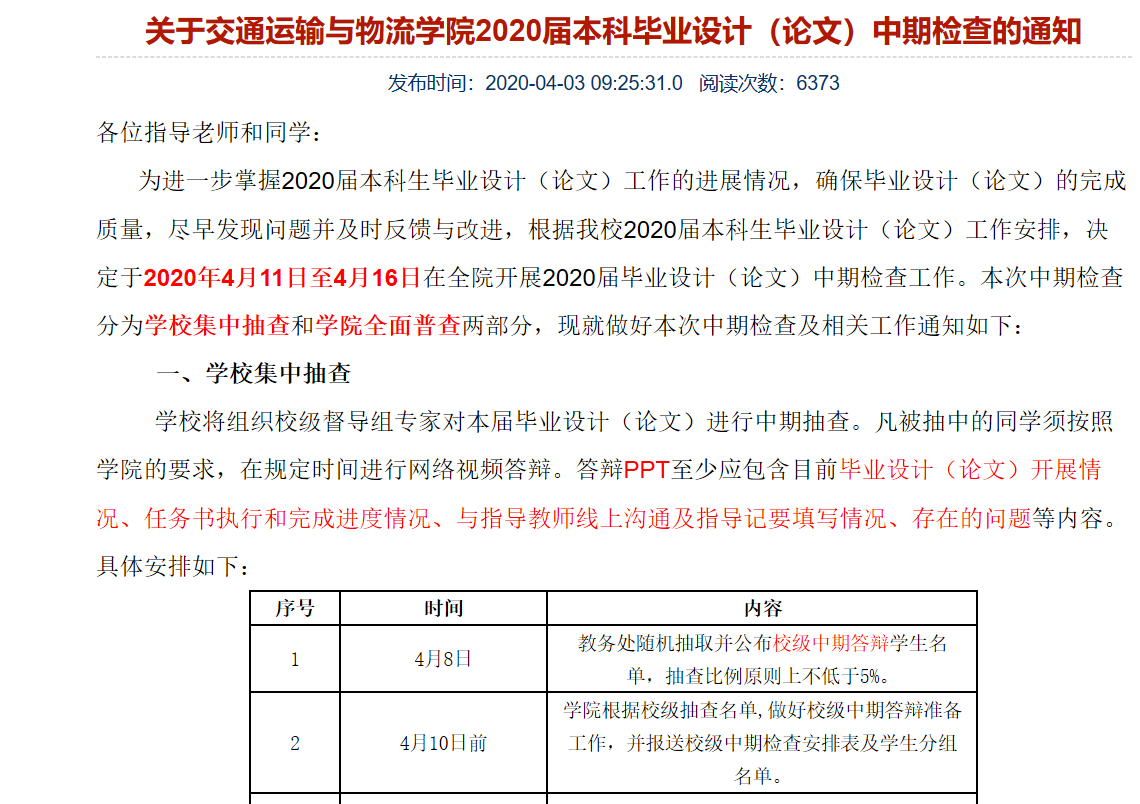 2月15日,学校发布了《关于做好 2020 年春季学期开学阶段本科教学有关工作的通知》(西交校教【2020】25号)和《伟德国际1949始于英国关于加强疫情防控、保障2020届本科毕业设计(论文)质量的工作方案》,明确毕业设计(论文)指导工作于2月24日与学校线上教学同步开始,要求指导教师充分利用网络进行在线远程指导,每周指导时间不少于一次。学院和物流工程系、物流管理系立即做了一对一通知和具体安排,确保每一位老师、每一位同学的工作到位。