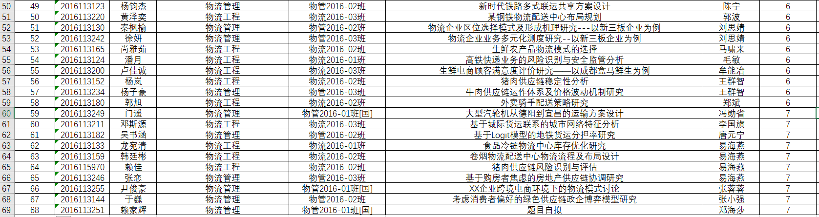 图2物流专业校级抽样名单