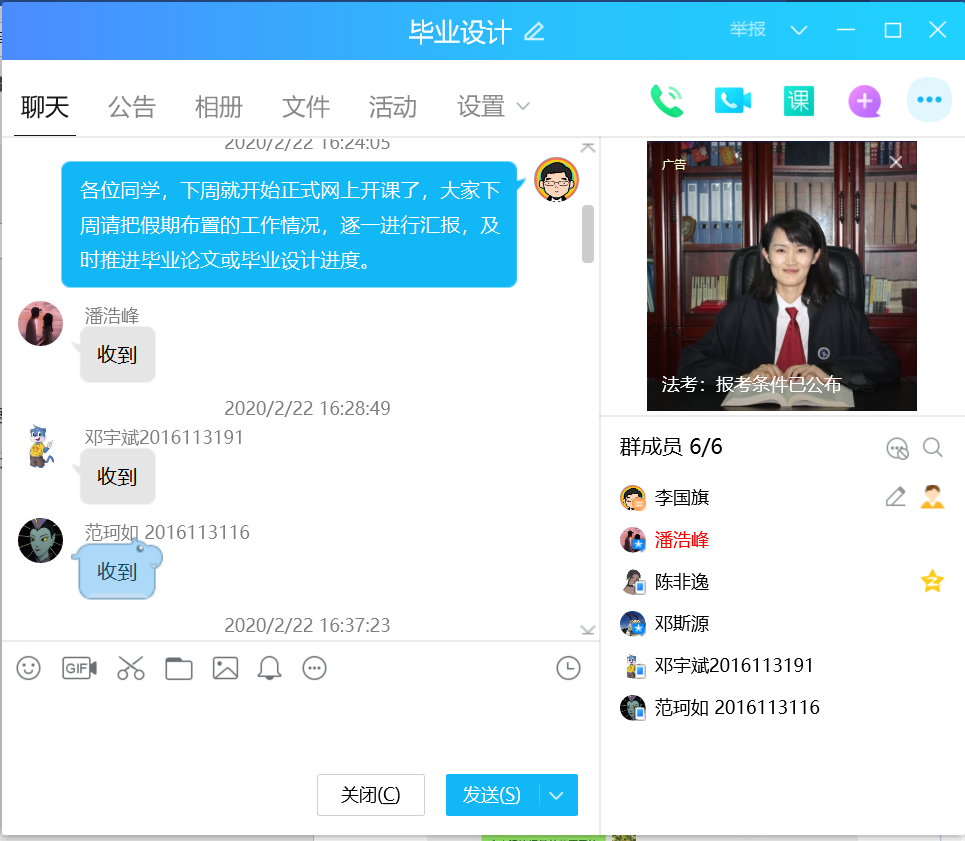 针对疫情带来的文献资料和数据收集难,特别是现场调研无法开展对科研类、实践类、工程设计类选题带来的影响,指导教师及时采取更换选题、适当调整设计内容、变更技术路线、提供历史资料数据等措施,保证背景材料与数据的支撑,确保设计与论文的开展。全体指导教师采取每周定时指导、小组在线会议、线上一对一指导等多种形式,实现选题员工的日常指导100%全覆盖,指导教师每周人均投入指导时间大大超过往届。例如:突如其来的疫情让家处武汉的物流工程毕业班员工张雅睿同学对毕业论文能否顺利完成产生了担忧。指导教师王坤副教授,首先经过微信交谈进行心理安抚,增强了该员工的信心,随后有针对性地建立了包括在线交流沟通、进展情况记录、资源分享等内容的论文指导工作机制,确保了该员工以及本组所有同学的毕业设计(论文)的进度和质量。