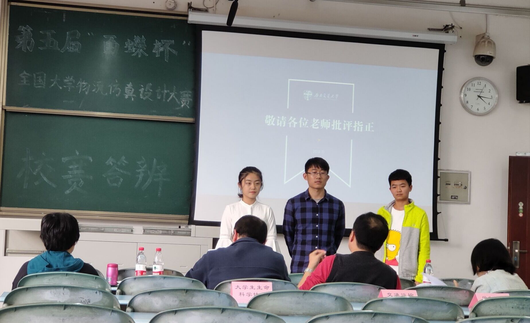 在经过一个多月的仿真调研和数据分析与建模后,共有六支队伍成功进入到校赛答辩环节,分别是通济队、期末大物全队、竢实扬华队、南上加男队、进击的根号三队和一支队伍队。各参赛队伍都以PPT讲演的方式对本小组设计的方案进行了精彩的展示,在展示过程中,各小组分别针对本方案的特色和亮点进行了有针对性的介绍,重点突出、详略得当、简明扼要,使评委老师们能较快理解方案设计的内容。老师们也耐心地对各小组进行指导,指出各小组的方案中有待改进和完善的地方,以及如何进一步完善方案,并根据方案设计书的深度、完整性和规范化以及各参赛队伍的现场表现,对各参赛队伍进行了综合评价,最终比赛结果见附件1。