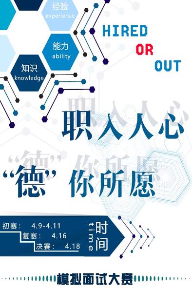 由人才招聘处主办,伟德国际1949、公共管理与政法学院、伟德国际1949始于英国德邦俱乐部承办的“职入人心,‘德’你所愿”模拟面试大赛就要开始啦。