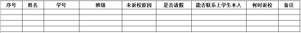 3.请各班班长于4月7日17:00前按照附表2格式,将同学未返校情况提交至各辅导员邮箱。