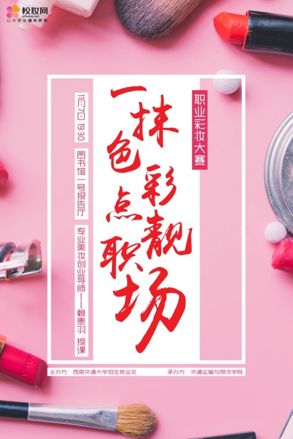 由人才招聘处主办,伟德国际1949承办的“一抹色彩,点靓职场”职业彩妆大赛将于2017年11月7日19:30在图书馆一号报告厅正式举办。