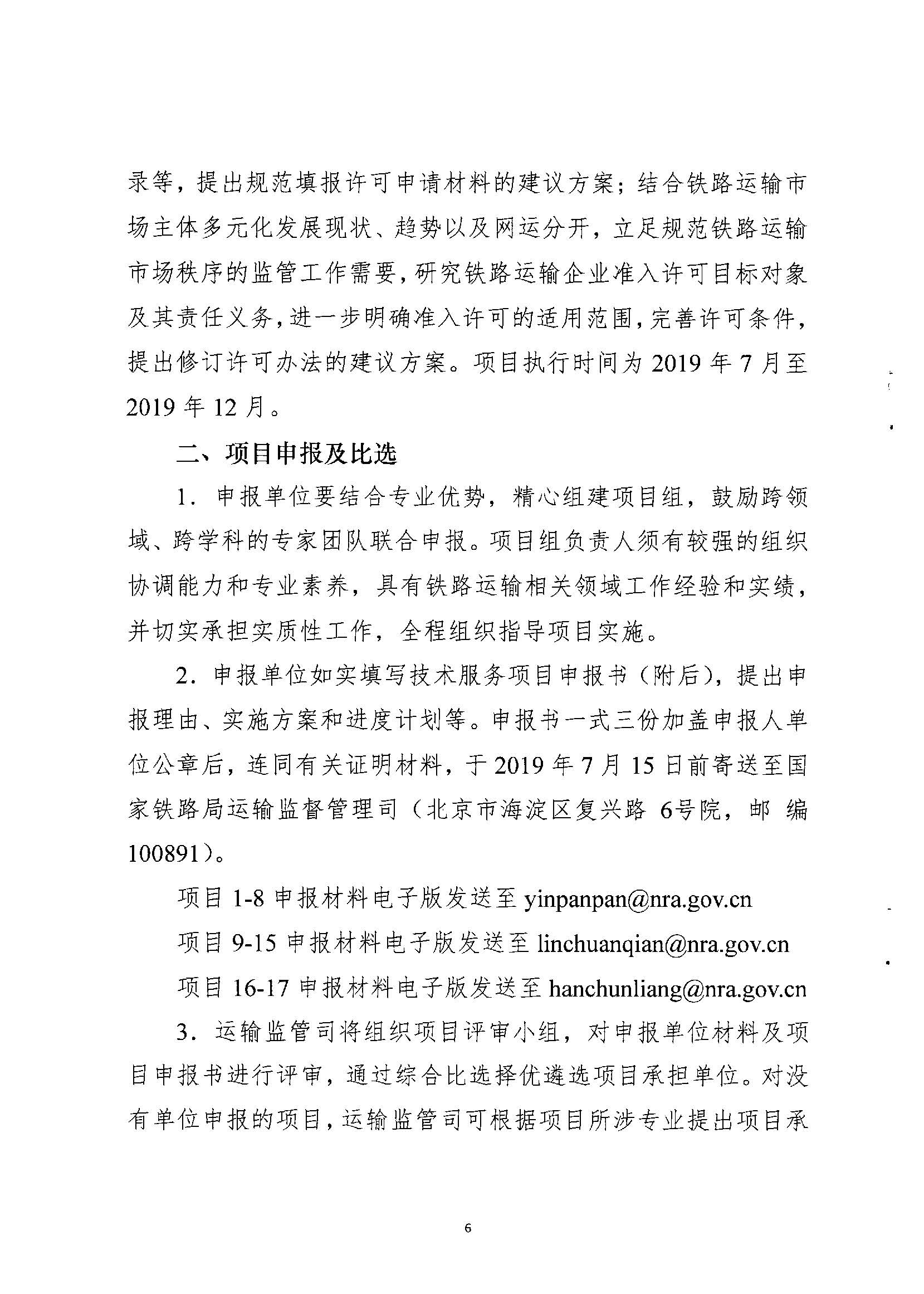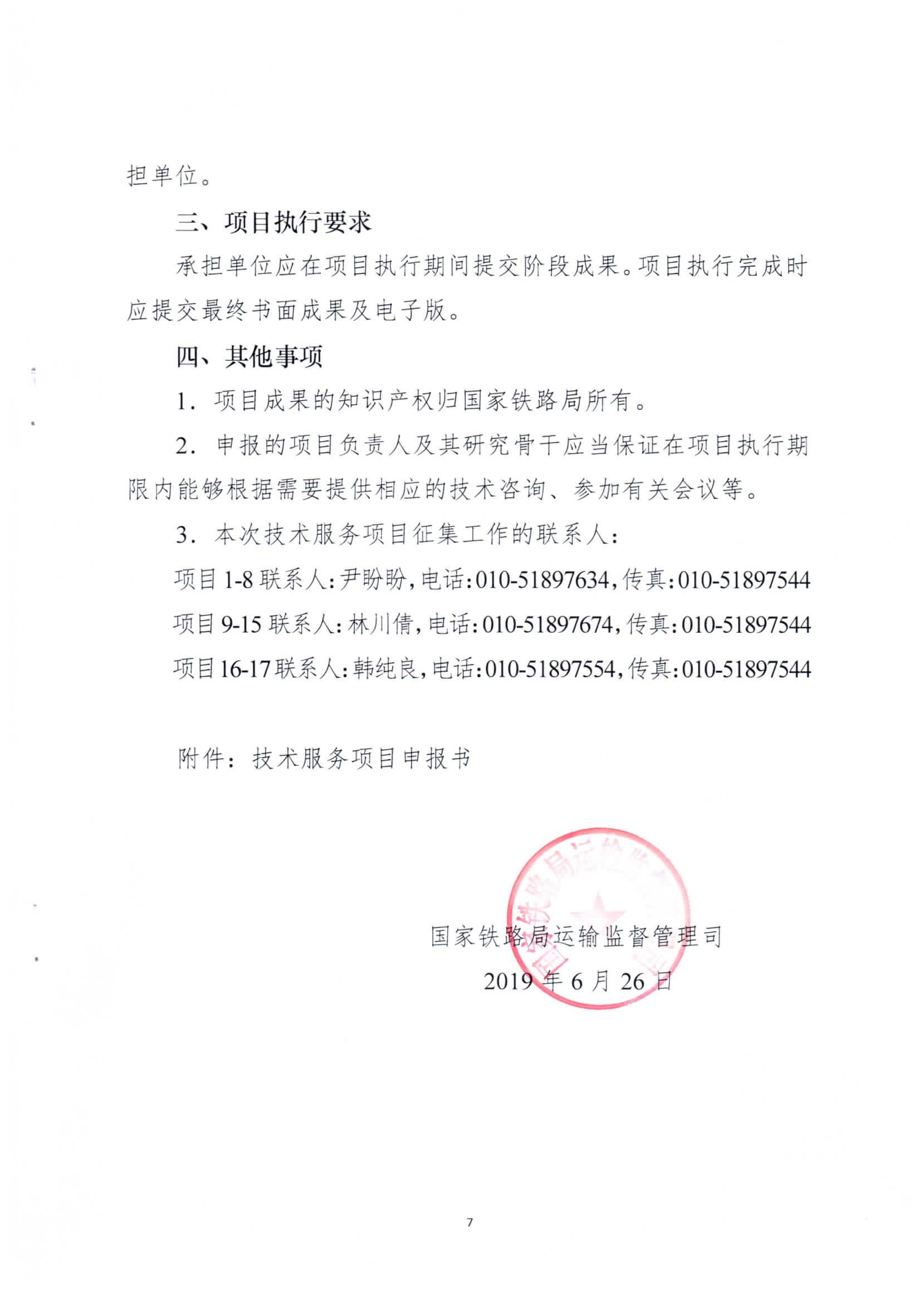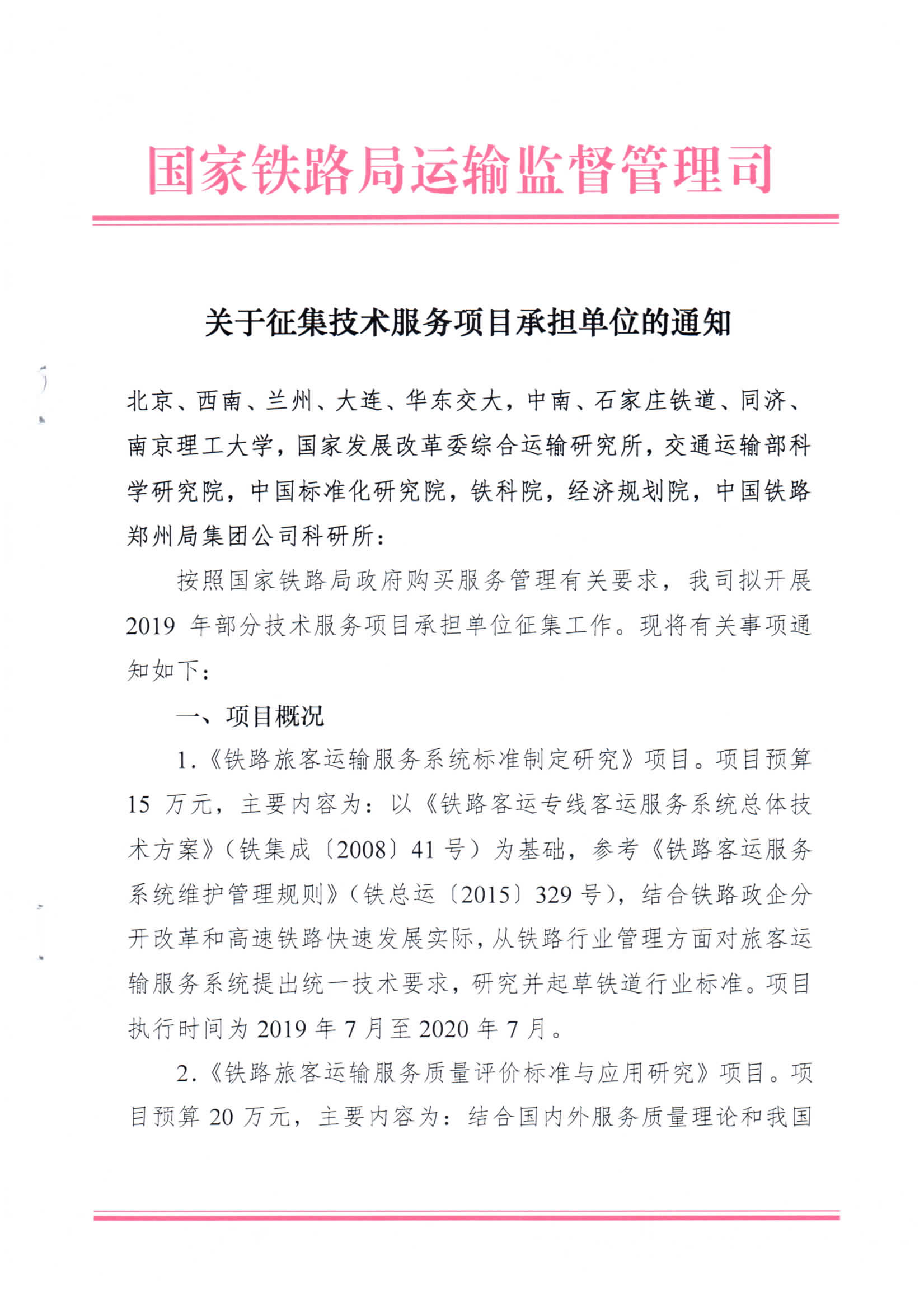 转发国家铁路局运输监督管理司《关于征集技术服务项目承担单位的通知》