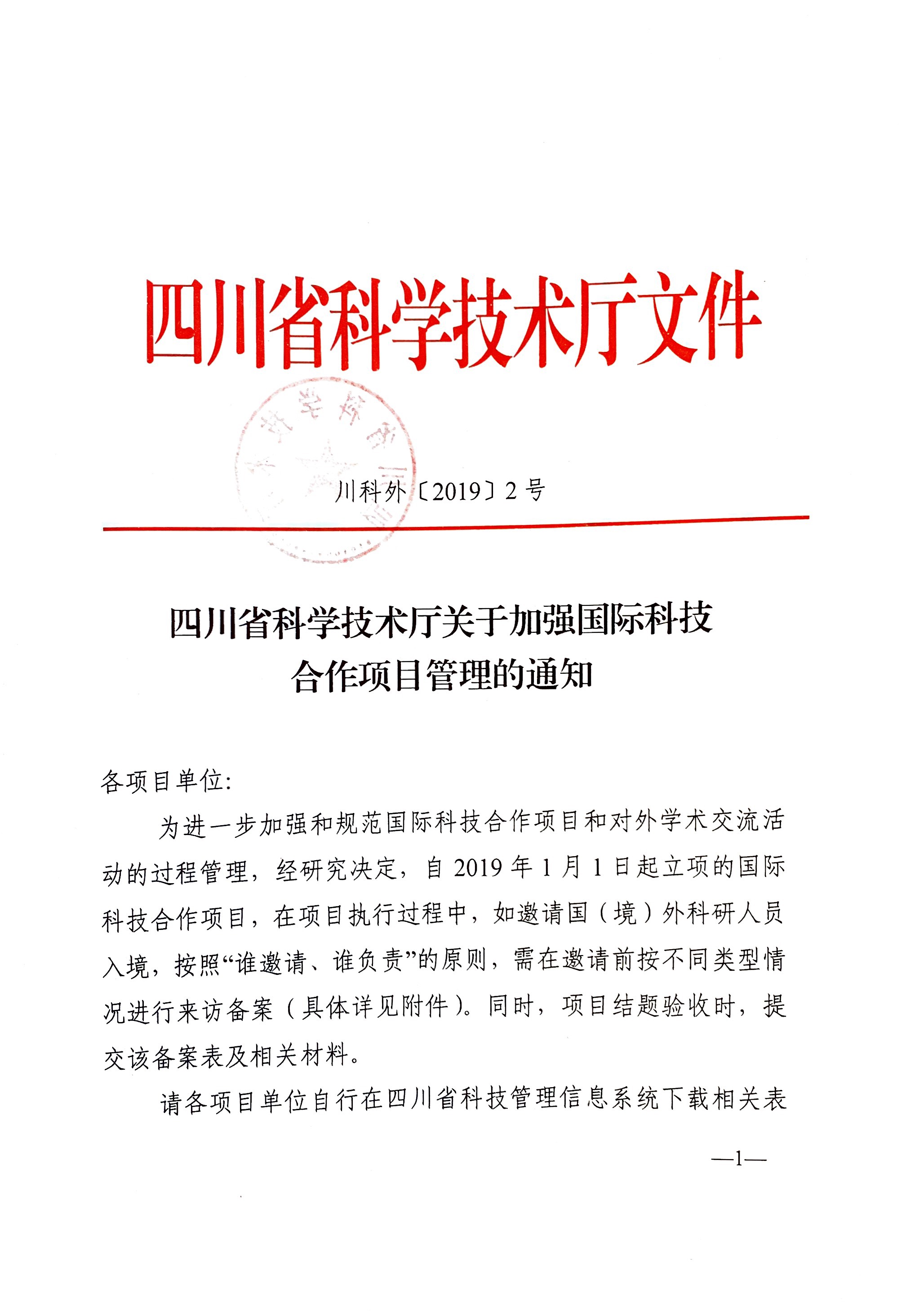 转发《四川省科学技术厅关于加强国际科技合作项目管理的通知》