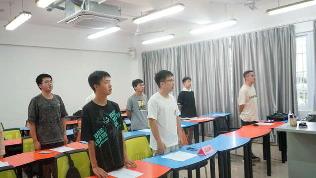 在仪式的最后,全体老师同学面向团旗,奏唱团歌,行注目礼。中国共青团的精神在这里传递、延续、生生不息。