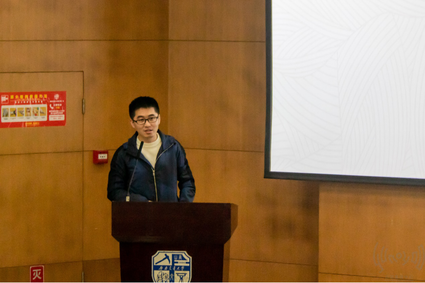 报告会伊始,王炎冰老师首先致开场词,他以轻松的语调表示交运之星先进事迹报告会是对优秀交运学子进行表彰,同时也是向大一新生提供一个号召同学们见贤思齐的平台。希望到场的每位大一新生都能从这些交运之星的生活、学习、科研科创等方面有所收获,能够对如何规划自己大学未来的生活树立一个标杆。