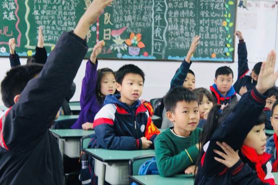 2019年正值中华人民共和国成立70周年,志愿者们在原有的课程主题上新增“我爱我的祖国”特色主题。通过讲解国徽国旗、中国地图等知识来增强孩子们的爱国意识。紧接着,小学教室里响起了志愿者和孩子们歌唱《强国一代有我在》的动人歌声。