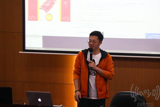 而微信官方SVG AttributeName开发者、复旦大学青年智库讲师计育韬老师,则用一篇独特的讲义以及独具一格的互动,让在座的各位同学在不知不觉中就知晓了有关新媒体的运营形态、融媒体化以及新媒体的数据管理的知识。同时,计老师也对图片的制式、色彩还有H5、二维码等进行了讲解。