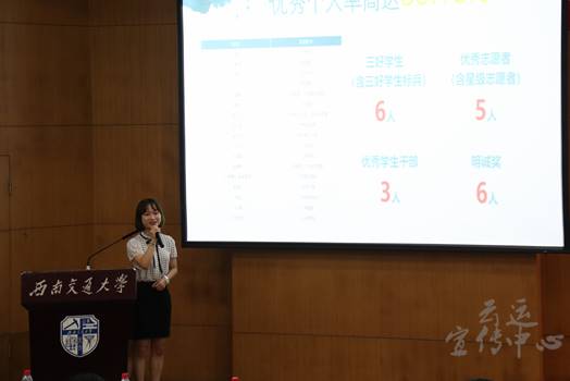 其中2016级交运詹班以五首歌曲唱出了他们三年的经历。序章——《遇见》,2016年,几十位来自天南海北的青年在四川成都相聚,他们的故事,从此揭开篇章;和声——《陪你度过漫长岁月》,相互的陪伴是老员工活中必不可少的调味剂;共鸣——《不将就》,大学三年的生活中,他们不将就眼前的成就,勇攀高峰;终章——《相信我们会创造奇迹》,全班同学集体演唱,对他们而言,这不再是一首歌,而是属于他们的自信和风采。