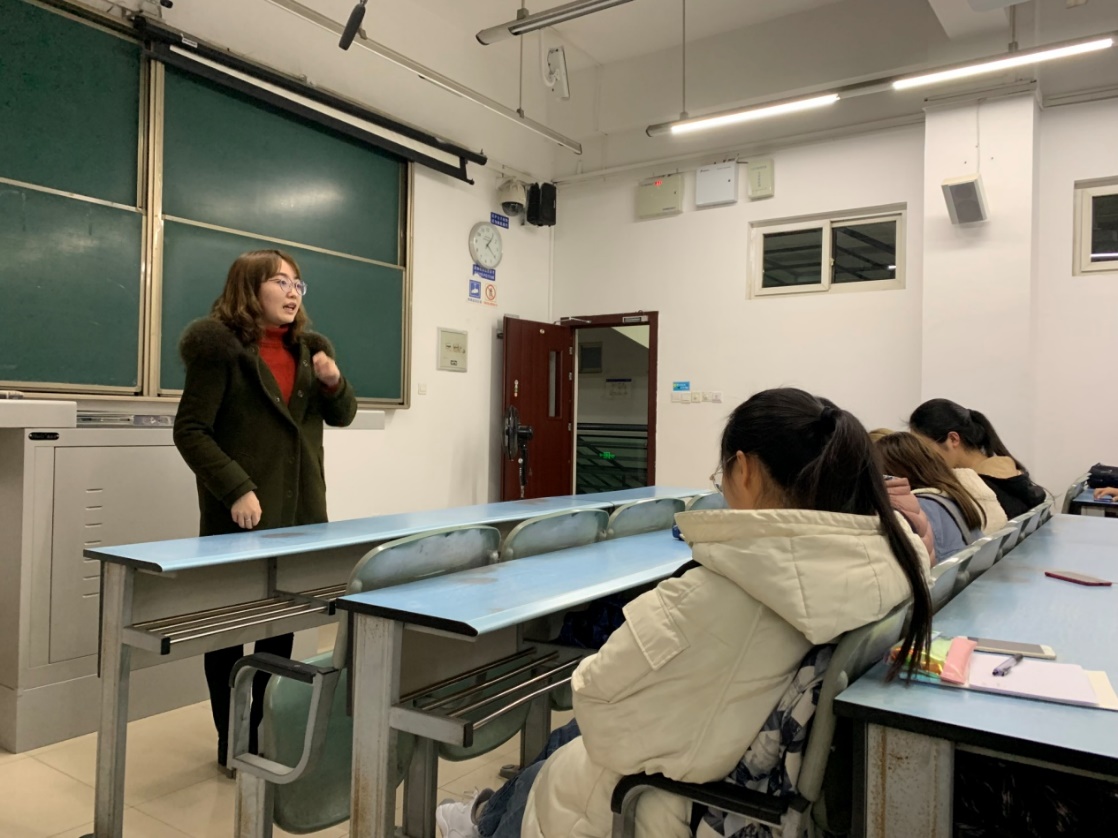 该班学业导师廖嘉雯学姐为交运二班班会做了最后的总结,学姐结合自身的学习经验,向大家提出了针对每门学科切实可行、高效的学习方法,并详细分析下学期课程的重要性。例如,学姐给大家介绍了大学四年内的保研课程以及成绩的要求,还有英语六级的学习策略等等。从中,大家了解到各种科创类活动竞赛和出国交流项目的一些信息,这无疑增强了同学们对学习的动力。