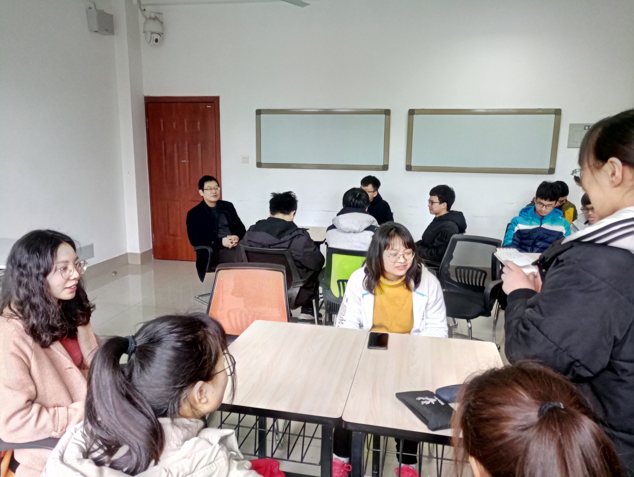 参加各班班会的辅导员薄琳老师来给大家讲述我们大学学习要注意的几个点。第一,适合自己的才是最好的。在经历了上半个学期的社团组织各类活动后,在这个学期大家应该对所加入的社团组织有所取舍,那么如何进行抉择成了一个问题。在此,薄琳老师建议大家适合自己的才是最好的,大家要懂得自己未来大学四年的发展方向,做到有的放矢。第二,任何事情都要提前做好规划。从长远来看,是对我们整个大学四年以及今后的工作就业方向做好一个大致的规划;从短期来看,是对当下这一学期各门学科学习的规划,小到每月每周每日。第三,学习与社团活动的协调,大家应该在学习和社团之间找到一个平衡点。总而言之,班级导师和辅导员都强调学业的首要性对我们至关重要。