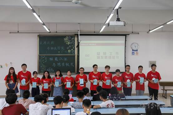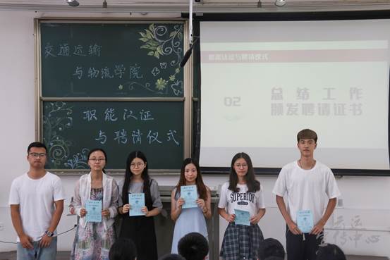 2018年7月14日下午5:00,由伟德国际1949主办、团建工作委员会承办的交运学院职能认证与聘请仪式在X2317正式开始。出席本次仪式的嘉宾有学院团委副书记、员工会指导老师、2017级辅导员雍腾老师,学院团委副书记、学工组副组长、团建工作委员会和青年志愿者协会指导老师、2015级辅导员王炎冰老师,云运宣传中心和班团联合会指导老师、2014级辅导员薄琳老师,员工工作组员工会指导老师周伊冰老师。