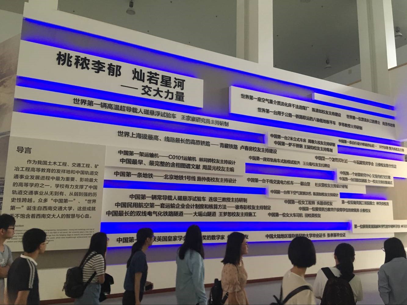 跟随交大颠沛流离的播迁路线,身临其境的通感营造,爱国爱校的跨时空融入,同志们不由自主地站在了广阔的历史视角,勾勒交大辗转五万里的苦难辉煌。展板与实物展品相结合,平面展示与立体展示相结合,传统展示手法与现代化展示手段相结合,校史不再是模糊在岁月里的故事,交大精神不再是八个遥远的文字,30余万员工尤其是共产党员,用自己的汗水和奉献,点滴汇聚而成可歌可泣的交大诗篇,交大党员的责任担当在大家心中凝成一股强大的合力。同志们依次认真参观了序厅、榆关始创、复校唐山、成就斐然、烽火相传、迎接曙光、砥砺前行、创业峨眉、蓉城新篇、交大力量等十个展厅,从学校的建校背景、历史沿革、办学特色、学科特点、历史使命五个方面出发,去深刻解读“竢实扬华、自强不息”交大精神,“严谨治学、严格要求”交大传统和“灌输文化尚交通、文轨车书郅大同”历史使命的校史馆的精神主旨,坚定了争做优秀党员和五有交大人的决心和信心。