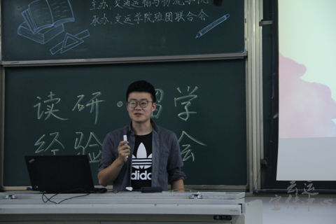 第一位分享者是研究生保送至本校交通运输规划与管理专业,曾获交运之星的张奕源同学。在谈到规划时,张奕源同学分享到:如果你不做规划,你就会被规划。他也表示,就业和读研都是深造,无论选择哪一者,重要的是坚持学习,全面发展。不要过早地给自己下定义,多去尝试,才会有无限可能。