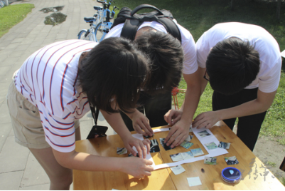 本次游园活动以3人为组进行,共有你说我猜、轨交拼拼拼、轨交竞速棋、声东击西和轨交独木桥五个点位。各小组先到起始点集合并签到,抽取纸条来确定下一个地点,每到一个点位就抽取一次来确定路线。参赛的队伍到达指定点位完成游戏并回答问题后获得印章,去往下一个位点。