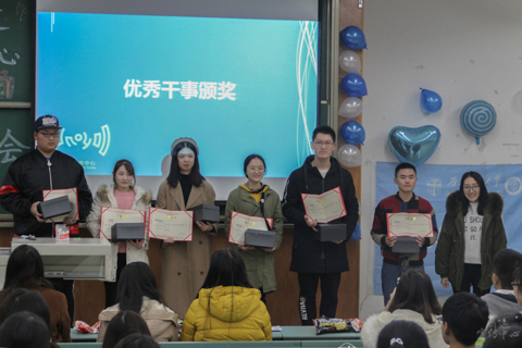 大会进入颁奖环节,申钰洁、张雅睿、王梓涵、潘月、宋晗卿、易佳欣获得“优秀副部”称号,刘娇、邹蕙、林米雪、唐琦、汪峻东、杨晨日获得“优秀干事”称号。记者团副部申钰洁作为优秀代表进行发言,她回顾了自招新大会以来云运经历的大小事宜,以及本学期云运转型对记者团的影响,表达了对干事们取得进步的欣悦,并分享了在云运与大家相处的点滴感动。文化站汪峻东作为优秀干事代表发言时分享了这学期在云运工作中的付出与收获,以及对于云运渐生的依赖之情和归属感,他表示将铭记“孕于云端,承于交运”的初心并续写云运人的新辉煌。