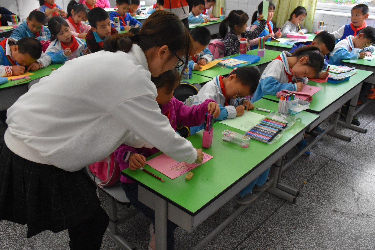 除此之外,第二三组同学进行的“爱老敬老”贺卡活动、第四组的蜡笔画课、第五组的校史课、第六组的中国结编织课都各有各的特色,小同学们的参与度和积极程度也很高,教室里充满了欢声笑语。