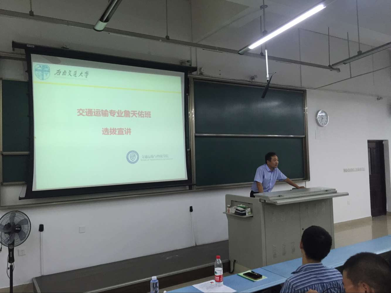 9月11日晚上18:30,2017级交通运输詹天佑班动员会在犀浦校区X2218教室正式开始。本次宣讲会到场嘉宾有教务处处长、詹天佑学院常务副经理郝莉老师,詹天佑学院柯小君老师,伟德国际1949马驷副经理,詹天佑班班导师张杰老师,伟德国际1949程美静老师和17级辅导员雍腾老师。