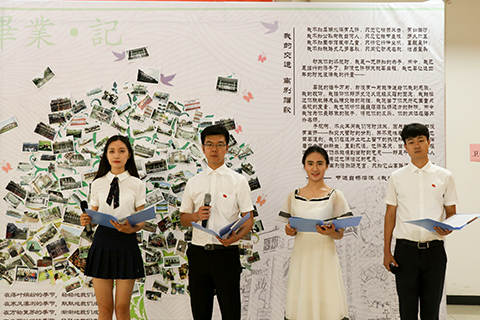 活动开始,毕业生们纷纷来到照片墙前合影留念,“南风送暖,梦归交运”,交运学子在四年的成长中不仅学到丰富的技术知识,收获到的更多的是个人能力的提高,一份独一无二的老员工活,一份来自学院的温暖。在此期间,几位同学在充满记忆的照片墙前深情朗诵13级交运茅班杨濡沫同学书写的《我的交运,离别颂歌》,诉说自己对交大的牵挂。“我不知犀湖水深几许,只觉它枯荣来去,有如潮汐;我不知公孙树栽自何人,只见它错节盘根,历久弥真;我不知图书馆藏书几重,只听它行吟坐咏,暮鼓晨钟;我不知铁路史几多春秋,只闻它功成名就,独占鳌头。”每一言每一语都饱含对交运学院浓烈深沉的爱,对这片辛勤培养自己土地的热爱。