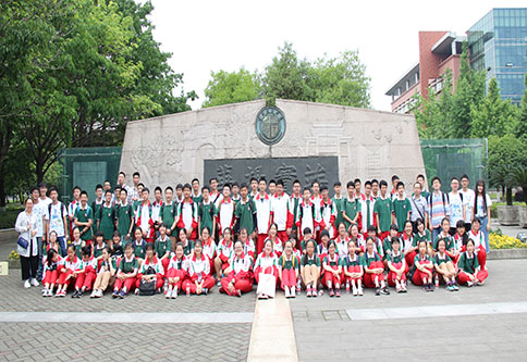 在竢实扬华碑前,志愿者为来访师生详细介绍了竢实扬华碑上各组成成分的意义以及交大“竢实扬华”的精神所在。最后,树德中学师生在竢实扬华碑前合影留念。三个多小时的参观交流活动至此圆满结束。