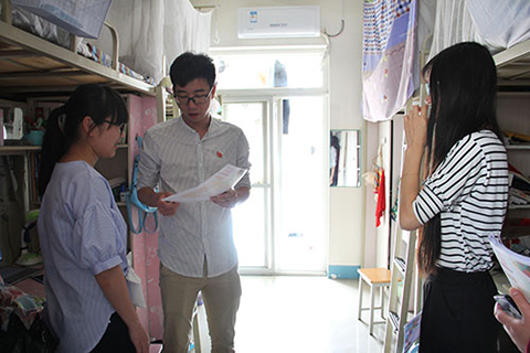 随后,李林卿老师和园区工作人员一起到伟德国际1949各员工宿舍发放防灾安全宣传册,宣传册中简要介绍了火灾成因、如何预防寝室火灾、室内室外地震避险的方法。宣传过程中,李林卿老师警示同学们要注意消防安全、地震避险,要树立安全防范意识,并再次强调禁止使用违章电器,以免种下安全隐患。同学们都表现出了积极认真的态度。