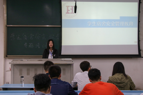 宿舍火灾频发,往往是宿舍人员违规用电所致。为此,王晓怡详细讲解了违章电器的种类,并介绍了相关的处理办法。同时,她还介绍了寝室检查的相关准则及注意事项。