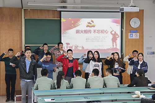 宣讲会以热播剧《人民的名义》中老党员陈岩石从入党的初心展开讲述抗日战争时期党员的“特权”开场。视频播放结束后,学院交运类国防生党支部和物流类国防生党支部的陈文杰、张欣、陈顺、刘经纬、刘佳文五名同学以历史的进程为线索,依次上台讲述了不同时期英雄人物的事迹。陈文杰同学首先介绍了3月26日本科交运类国防生党支部、物流类国防生党支部、本科交运第七党支部及部分国旗班同学在王炎冰老师、李清滢老师的带领下赴成都市烈士陵园进行的缅怀先烈的祭扫活动。张欣同学随后介绍了“对越反击战”中出现的代表人物。陈顺、刘经纬、刘佳文同学分别分享了防爆警察何晓雨、邱光华机组、女飞行员余旭的光荣事迹,赞美和怀念了这些为国牺牲、为革命事业献出生命的英雄人物。通过这样的分享,希望党员发展对象们可以铭记这个英勇无畏的人民警察,铭记3月14日国际刑警日,也铭记这个流血最多,牺牲最大的群体。在讲述邱光华这个为抗震救灾献出生命的英雄时,刘经纬同学还提到了我们身边的英雄——郭晨阳,希望同学们能以他为榜样,做有本事,有血性,有灵魂,有品德的交大人。女飞行员余旭在八一飞行表演训练的意外跳伞失败,光荣牺牲。党员发展对象们应该记住这个勇敢的女军人,同时,也肩负起自己身上的责任。