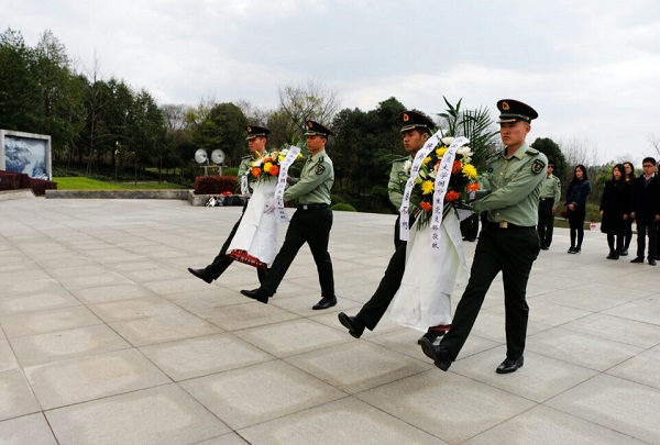 伟德国际1949物流类国防生党支部书记王炎冰老师和交运类国防生党支部书记李清滢老师以即将到来的清明节为契机,于3月26日组织带领本科交运类国防生党支部、本科物流类国防生党支部、本科交运第七党支部以及部分国旗班同学前往成都市烈士陵园怀念逝者,缅怀人民英雄。